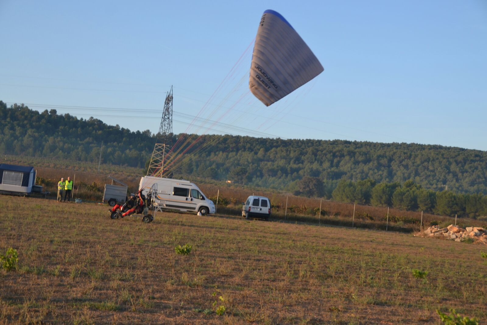Desafortunadamente, las tandas de tomas de precisión vinieron acompañadas de un brusco empeoramiento de las condiciones meteorológicas, que finalmente obligaron a cancelar los vuelos de los paramotores previstos para última hora de la tarde.